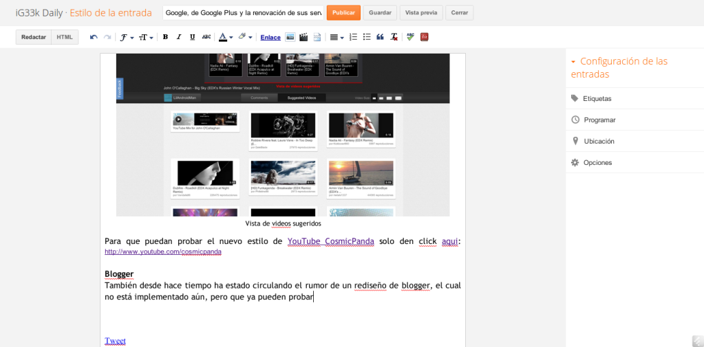 También desde hace tiempo ha estado circulando el rumor de un rediseño de blogger, el cual no está implementado aún, pero que ya pueden probar en http://draft.blogger.com/