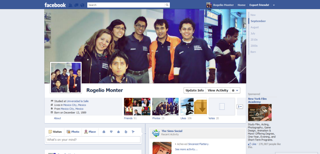 Si todavía no sabes que es Timeline de Facebook, pudes verlo aquí.
